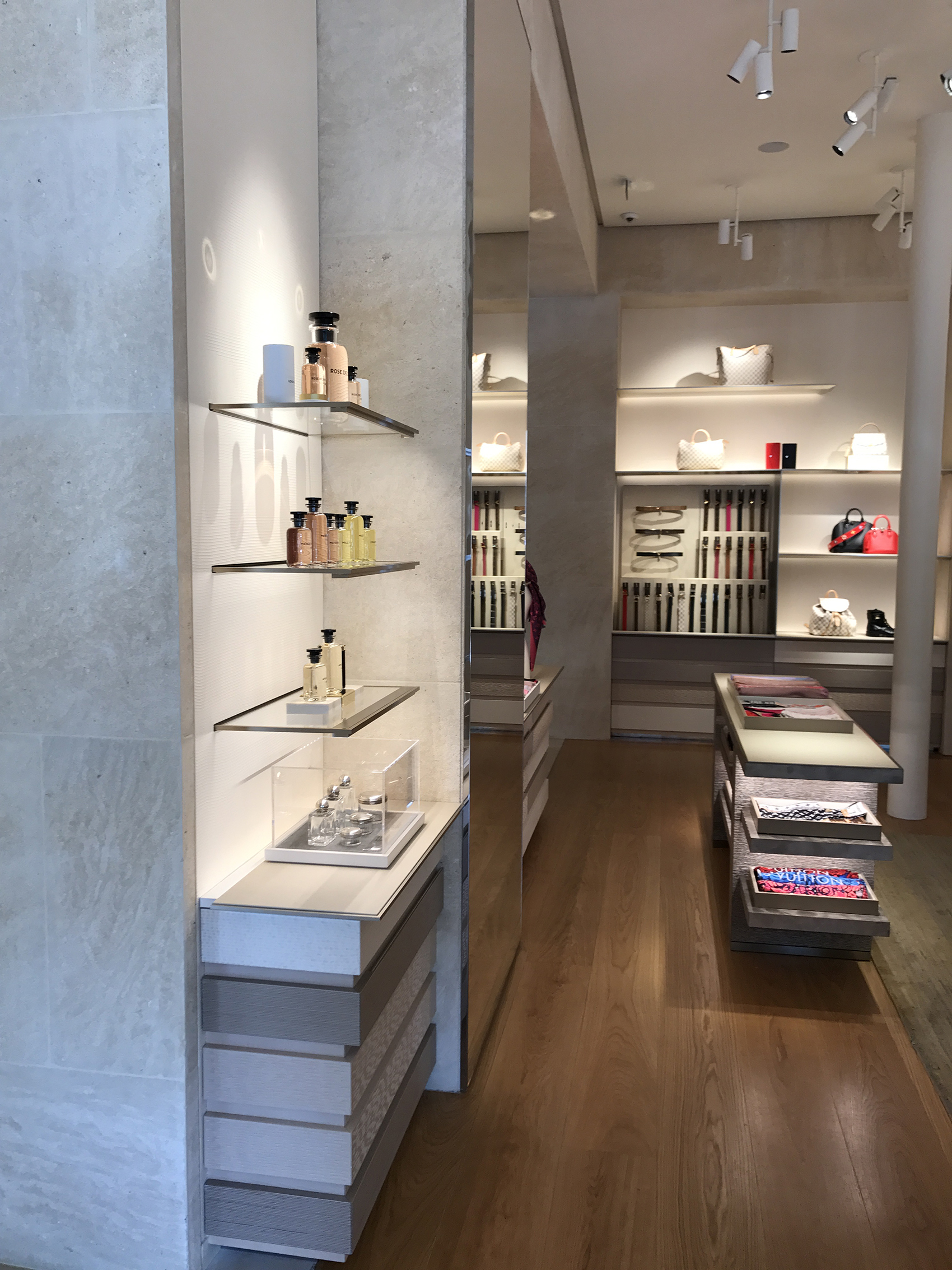 ← Retour LOUIS VUITTON LINES Saint Germain, ParisHabillage mural des espaces Joaillerie et Parfumerie.Collection • Lines ← Retour